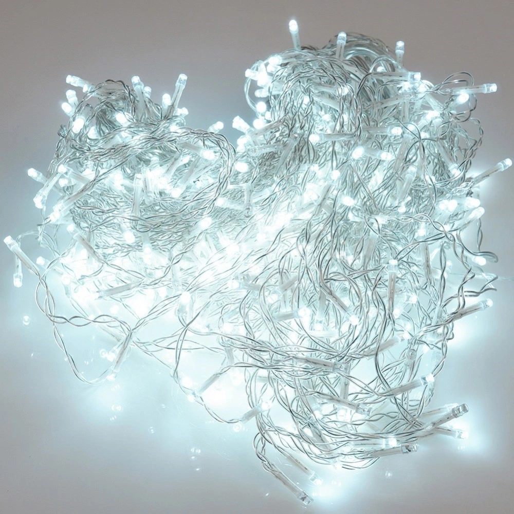 - Zimna barwa światła - Girlanda posiada 500 diod LED o zimnej, białej barwie - umieszczone w przezroczystych przewodach. Oświetlenie prezentuje się bardzo efektownie.