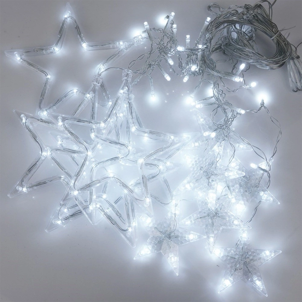 - Kurtyna świetlna z lampkami w kształcie gwiazdek 120 LED. 8 trybów świetlnych. Do użytku wewnątrz i na zewnątrz pomieszczeń.