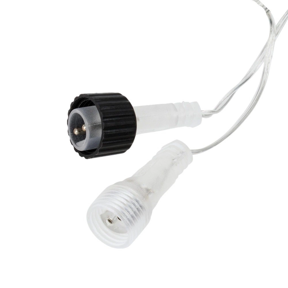 - Zasilana sieciowo - Kurtyna zasilana sieciowo, odległość kabla do pierwszej lampki wynosi 1,5 metra. Produkt posiada zabezpieczenie IP44, jest odporny na warunki atmosferyczne.