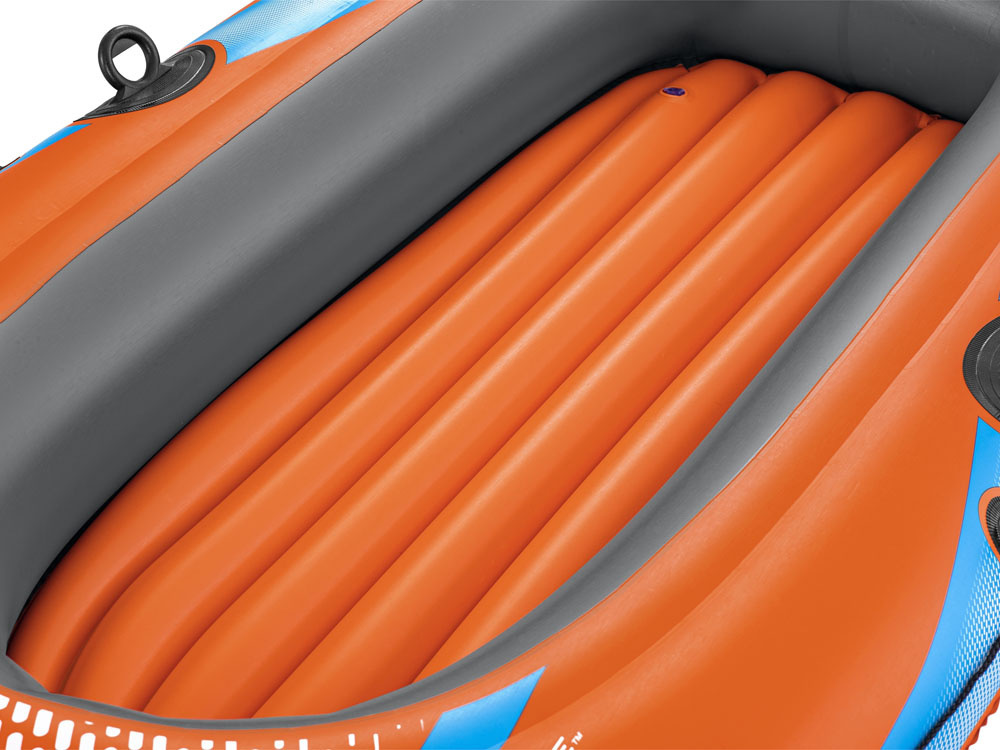 Dmuchany ponton Kondor Elite™ 2000 renomowanej firmy Bestway® to idealne rozwiązanie dla każdego fana rekreacyjnego pływania. Bez problemu pomieści jedną osobę dorosłą oraz jedno dziecko. Konstrukcja z dwoma komorami powietrznymi zapewnia trwałość i wytrzymałość. Dodatkowym atutem pontonu Bestway jest wygodna, dmuchana podłoga. Po bokach pontonu znajdują się zatrzaski, które ułatwiają utrzymanie wioseł na miejscu a lina z wbudowanymi uchwytami umożliwia zadokowanie pontonu. W zestawie z pontonem znajduje się 1 para wioseł, uniwersalna pompka nożna oraz łatka naprawcza. Ponton posiada wbudowany zawór bezpieczeństwa.
