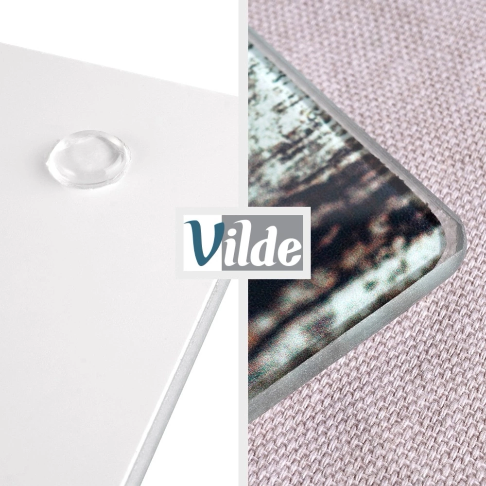 Zestaw dwóch szklanych desek do krojenia. Posiadają prostokątny kształt oraz efektowny dekor. Deski są łatwa w czyszczeniu i wygodne w użytkowaniu, dzięki antypoślizgowym nóżkom. Posiadają dużą powierzchnie krojenia. Niezbędne w każdej kuchni. Dzięki deskom utrzymamy blat w czystości i ochronimy go przed zarysowaniami. Oryginalny produkt marki Vilde. Wyprodukowano zgodnie z europejskimi standardami.