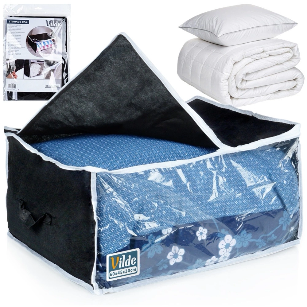 - Praktyczny pokrowiec na pościel - Praktyczny pokrowiec na pościel, koce, poduszki oraz ubrania. Chroni pościel przed zawilgoceniem, kurzem, molami i innymi czynnikami zewnętrznymi. Pokrowiec zapewni wygodne przechowywanie rzeczy w szafie lub pod łóżkiem. Pokrowiec ma wymiary 60 x 45 x 30 cm i pojemność 87 l.