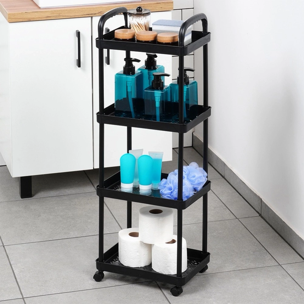 - Praktyczny regał na kółkach - Praktyczny, mobilny regał z czterema poziomami do przechowywania. Regał ma wymiary 30 x 21 x 86 cm i jest wyposażony w cztery półki każda o wymiarach 30 x 31 x 3,3 cm.