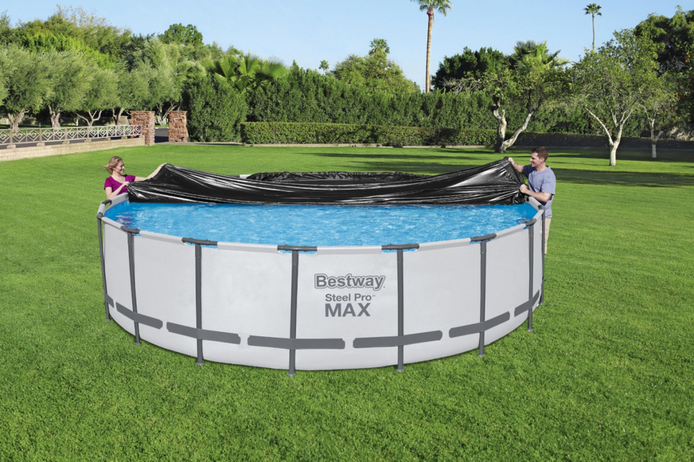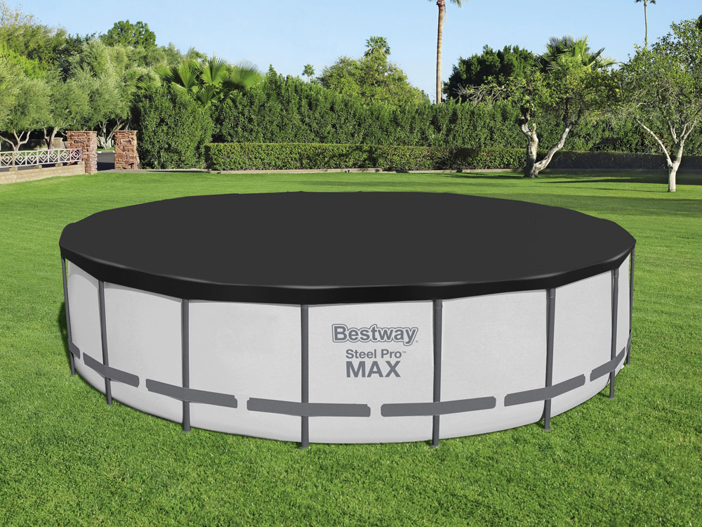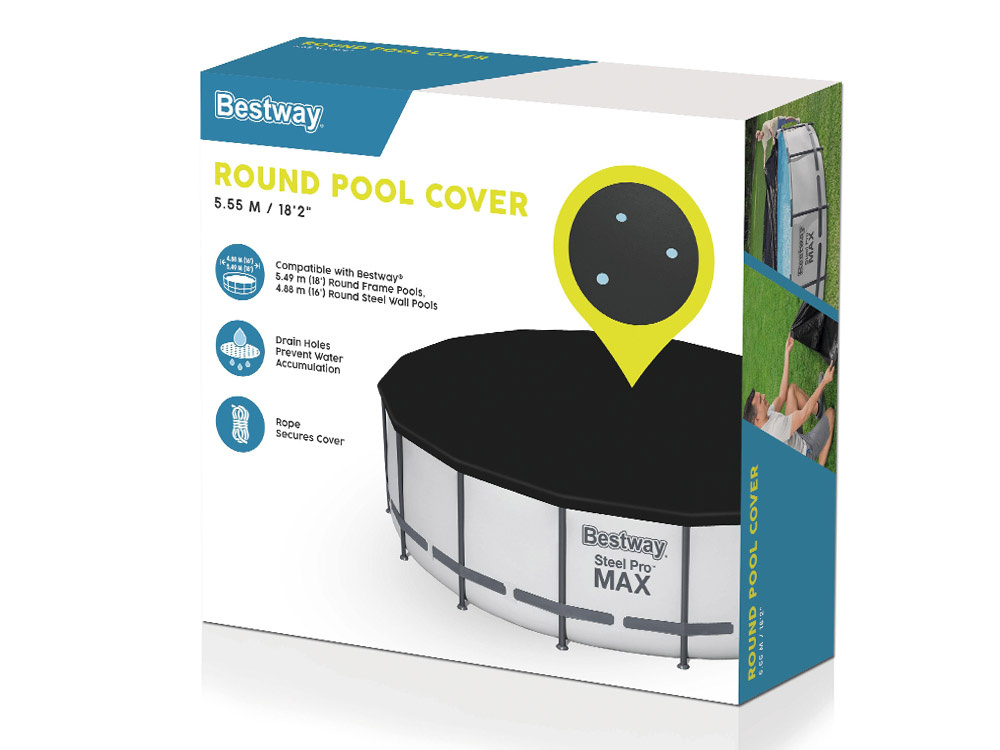 Pokrywa ochronna basenu, zapewnia ochronę basenu przed owadami, ptakami, liśćmi i małym deszczem. Jest dodatkowym zabezpieczeniem przed przypadkowym wpadnięciem do basenu dzieci. Pokrywa stanowi dodatkową izolację termiczną wody w basenie. Dzięki linkom umożliwiającym jej umocowanie, wiatr jej nie zerwie a otwory odpływowe skutecznie odprowadzą nadmiar zbierającej się wody. Wykonanie pokrywy z bardzo trwałego i mocnego materiału pozwoli na używanie jej przez wiele sezonów.