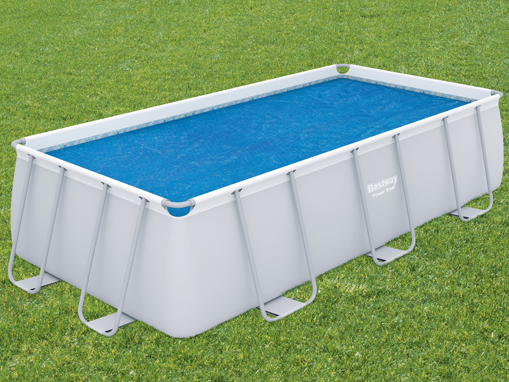 Pokrywa solarna Bestway przeznaczona do basenów stelażowych o rozmiarze 404 x 201cm. oraz 412x201cm