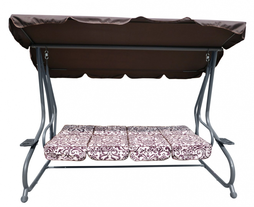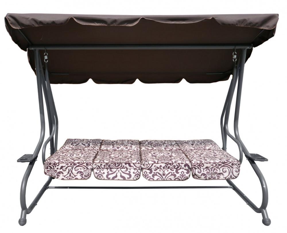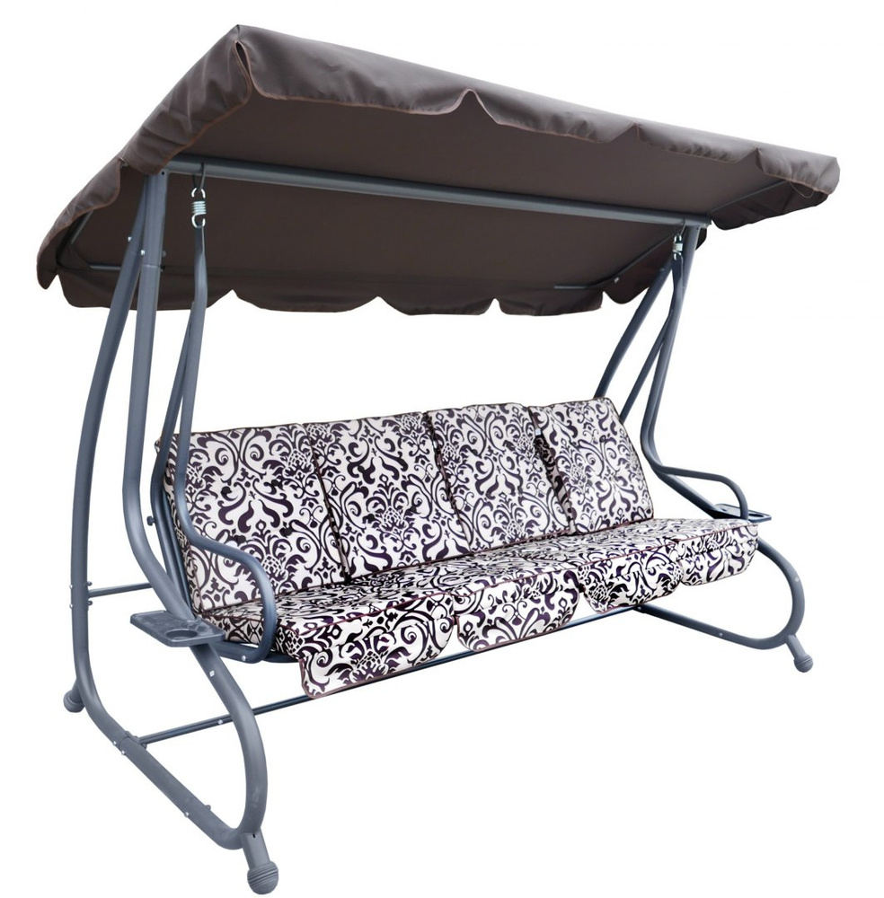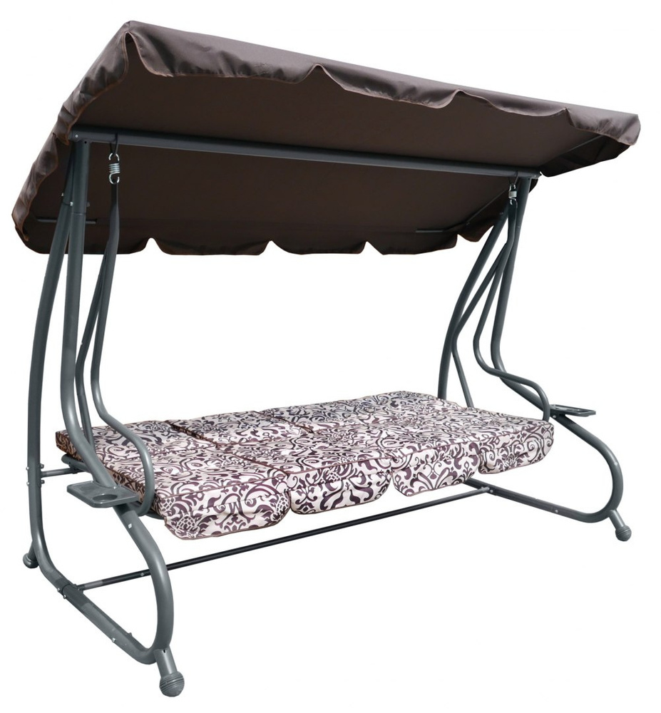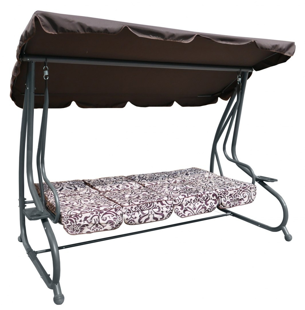 Opis  Huśtawka ogrodowa z rozkładanym siedziskiem i regulacją daszka, ciemny brąz ze wzorem [8078 PATTERN CB]