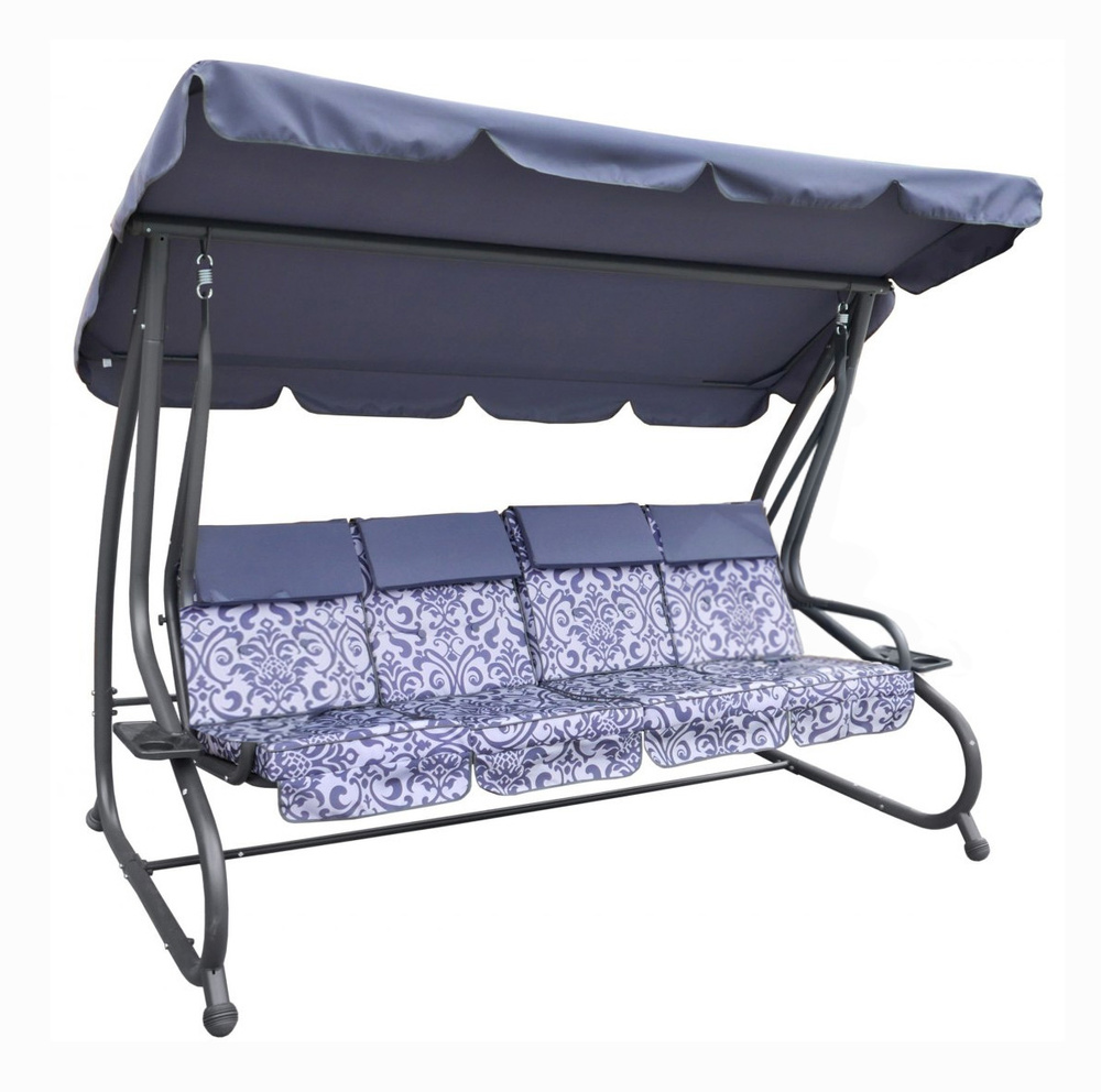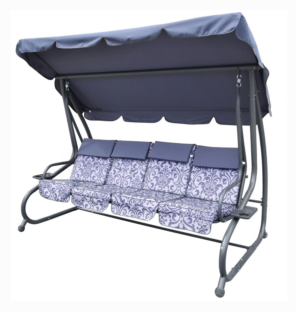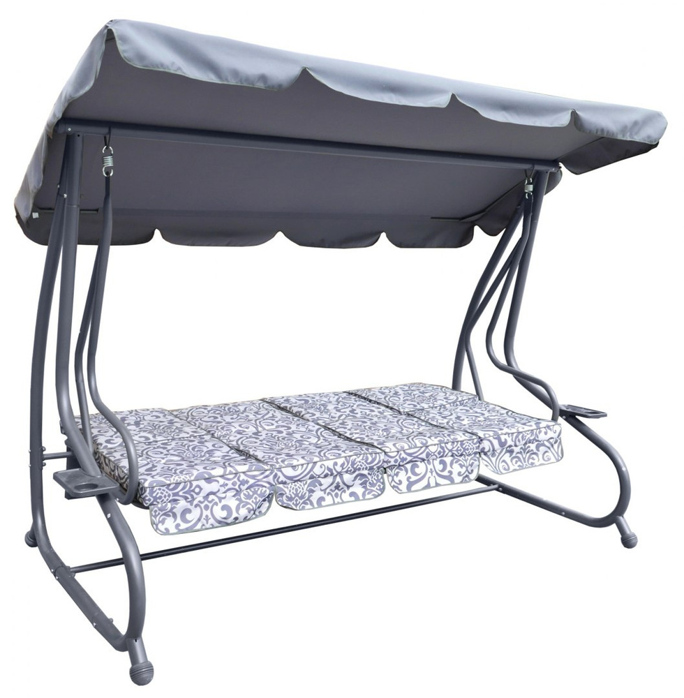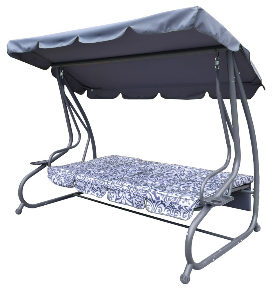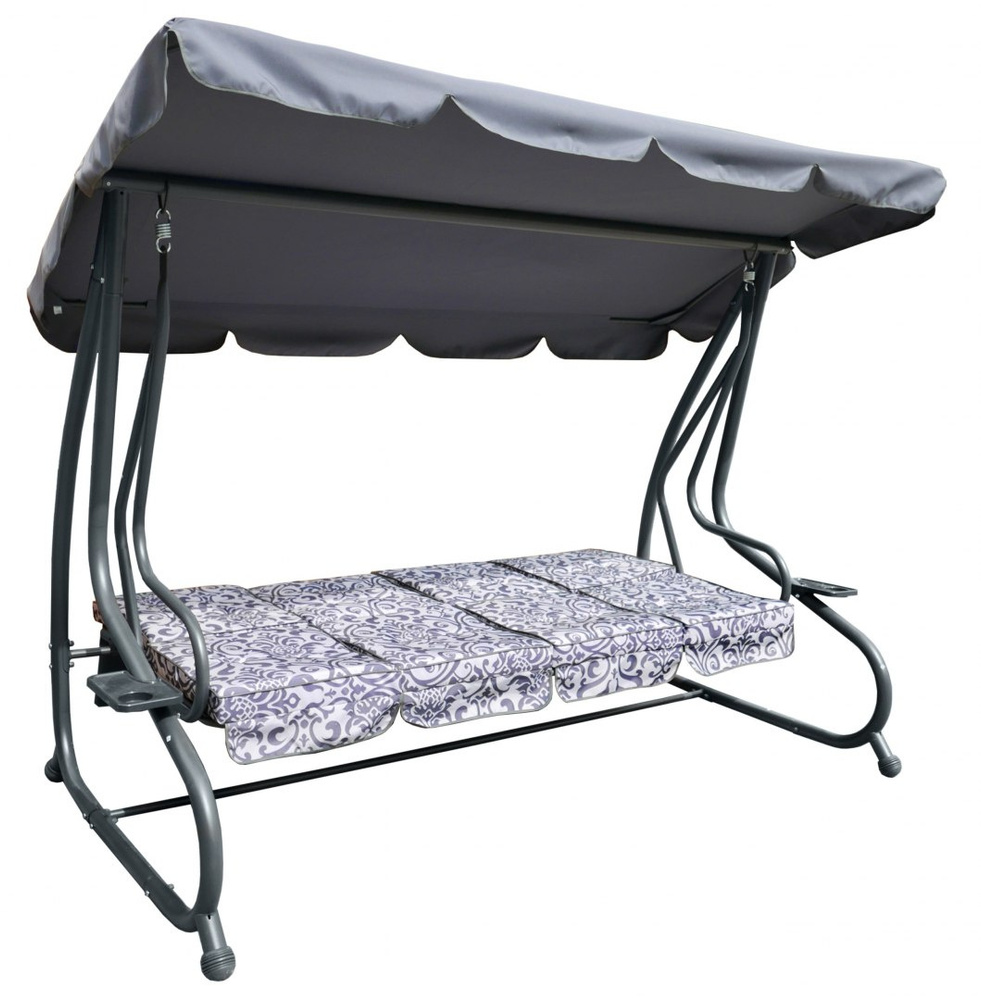 Huśtawka ogrodowa z rozkładanym siedziskiem i regulacją daszka, szara ze wzorem [8078 PATTERN SZ]