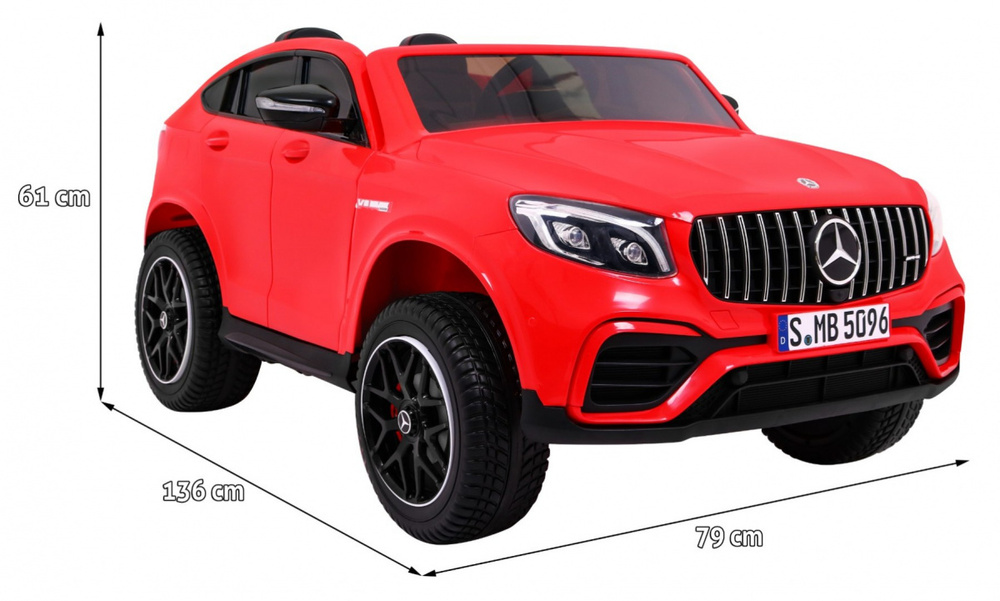 Auto Mercedes GLC 63S dla dzieci Czerwony + Napęd 4x4 + MP4 + LED + Ekoskóra + Wolny Start + EVA