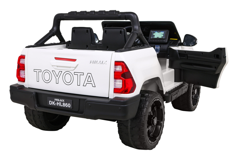 Toyota Hilux na akumulator dla dzieci Biały + Napęd 4x4 + Pilot + 2 bagażniki + Radio MP3 + LED