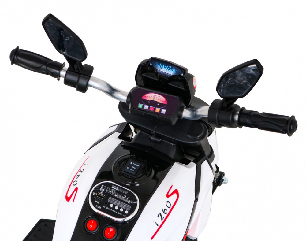Motorek Fast Tourist na akumulator dla dzieci Biały + Audio + Światła + Ekoskóra