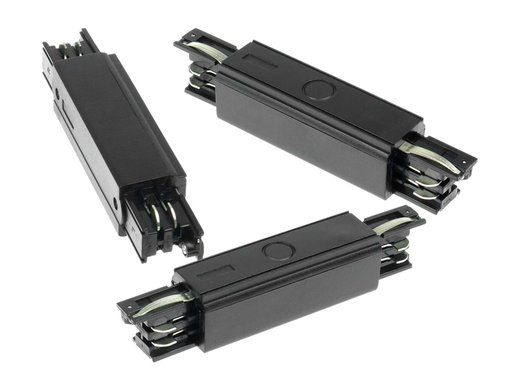 - Łącznik prosty czarny do szyn montażowych 3-fazowych, do montażu reflektorów szynowych na ścianie / suficie.