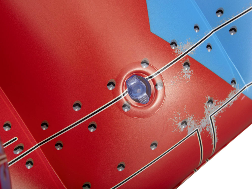 Duży dmuchany myśliwiec firmy Bestway to propozycja dla każdego miłośnika samolotów. Jak przystało na myśliwiec świetnie sprawdzi się podczas pokonywania morskich fal, jest stabilny, posiada mocne uchwyty zapewniające komfort pływania po różnych akwenach wodnych. Niezwykle realistyczna grafika oraz imponujący wymiar 136 x 135 cm sprawi radość każdemu młodemu pilotowi podczas wodnych zabaw.