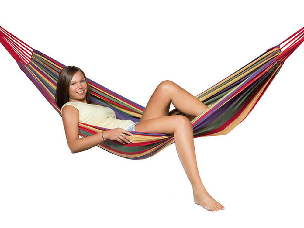 Wystarczy oba końce przywiązać do stabilnej powierzchni - haków, słupków czy drzew. Doskonały do zawieszenia na tarasie. Nawet, jeśli nie masz domu z ogrodem, nadal możesz się cieszyć wygodnym odpoczynkiem na hamaku - wystarczy że zawiesisz go na balkonie lub nawet podwiesisz w pokoju.