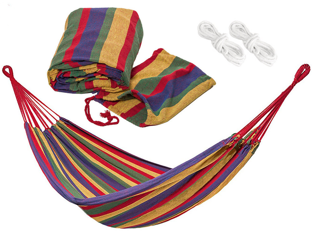 Wiszący hamak do ogrodu. Super wygodny! Nie ma nic lepszego niż wypoczynek na łonie natury, delikatnie kołysząc się w miękkim hamaku! Wystarczy przywiązać dwa końce hamaka do drzew lub słupków i już możesz cieszyć się wygodą!