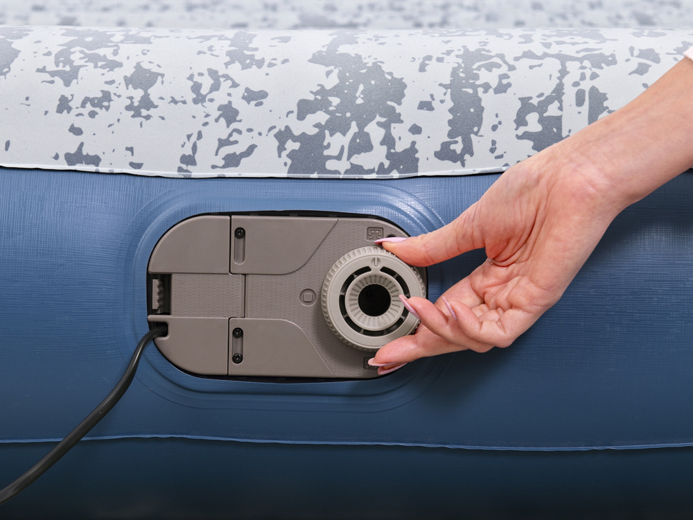 Dużym atutem materaca jest wbudowana pompka, która pozwali na samoczynne napompowanie materaca, jak również napompowanie go za pomocą pompki.