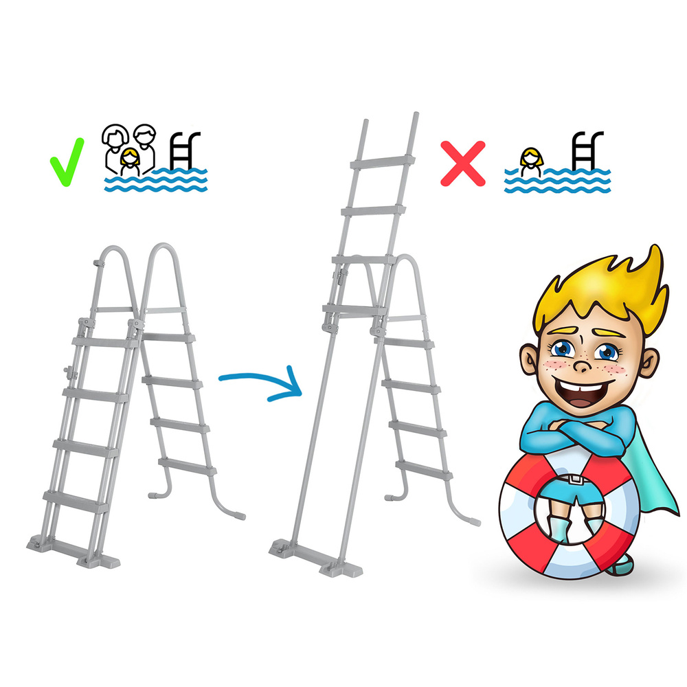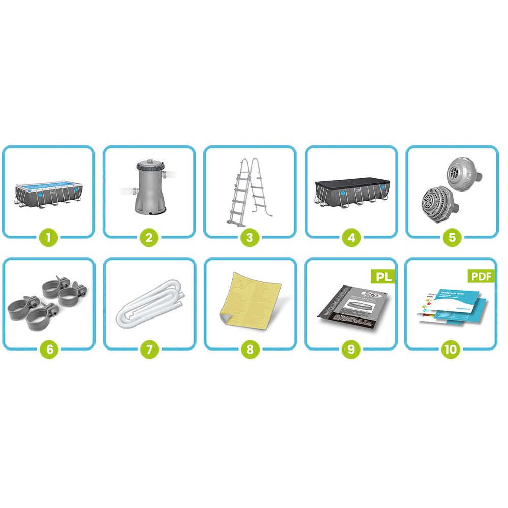 O czystość wody zadba pompa o wydajności 3,028 l/h z dołączonym filtrem typu II (58094). W zestawie znajdziemy również drabinkę, która ułatwi wchodzenie i wychodzenie z basenu. Dodatkowo, stopnie drabinki łatwo wysunąć do góry, tak, by dzieci nie miały możliwości wejścia do basenu bez nadzoru osoby dorosłej.