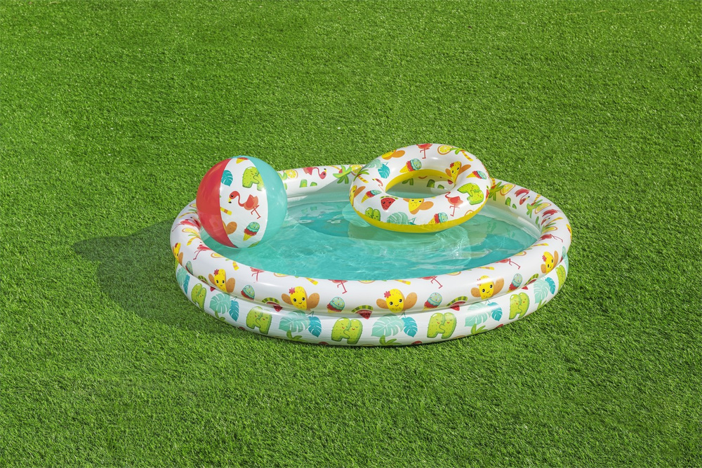 Basen + piłka + koło w ślicznej morskiej grafice to propozycja firmy Bestway dla najmłodszych.