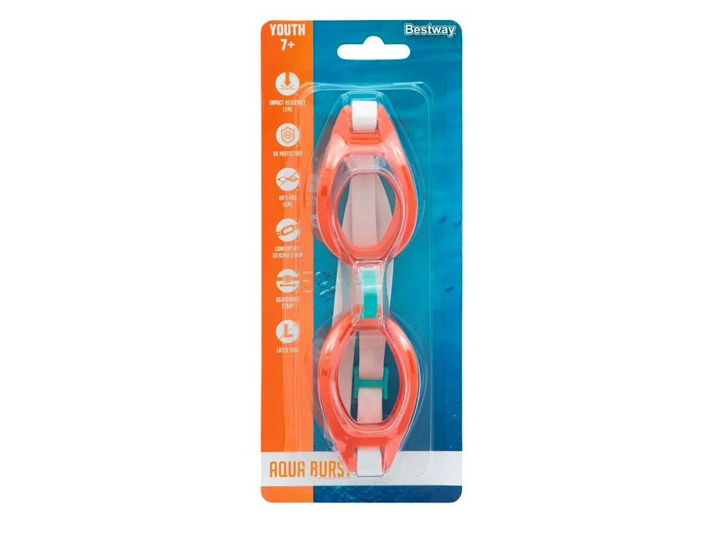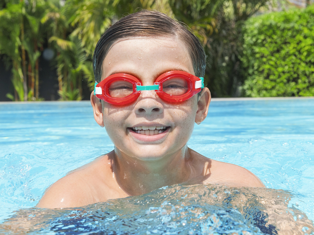 Okulary Bestway® Aqua Burst Goggles na pewno sprawdzą się podczas pierwszych lekcji pływania. Zostały stworzone z myślą o komforcie i bezpieczeństwie najmłodszych pociech w czasie zajęć na basenie. Soczewki gogli zostały wykonane z wytrzymałego materiału poliwęglanowego, dzięki czemu są odporne na uderzenia i mogą stawić czoła dzieciom, niezależnie od tego, czy skaczą, nurkują, czy chlapią się. Ponadto gogle chronią przed promieniowaniem UV, chroniąc oczy dziecka przed ostrymi promieniami słonecznymi podczas zanurzania się i nurkowania w wodzie. Regulowany mostek na nos i silikonowy pasek umożliwiają indywidualne dopasowanie gogli do głowy użytkownika. Okulary przeznaczone zostały dla dzieci w wieku od 7 lat.