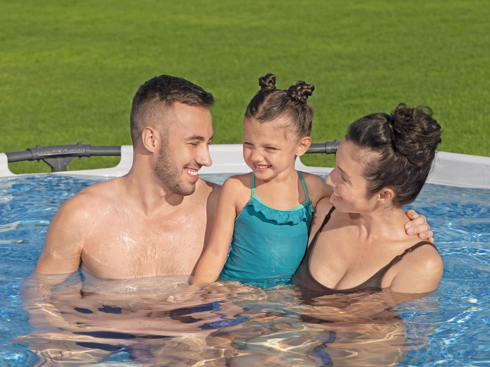 Stelażowy basen ogrodowy Bestway o wymiarach 305 x 76 cm i pojemności 4,678l zapewni mnóstwo ochłody w upalny dzień.