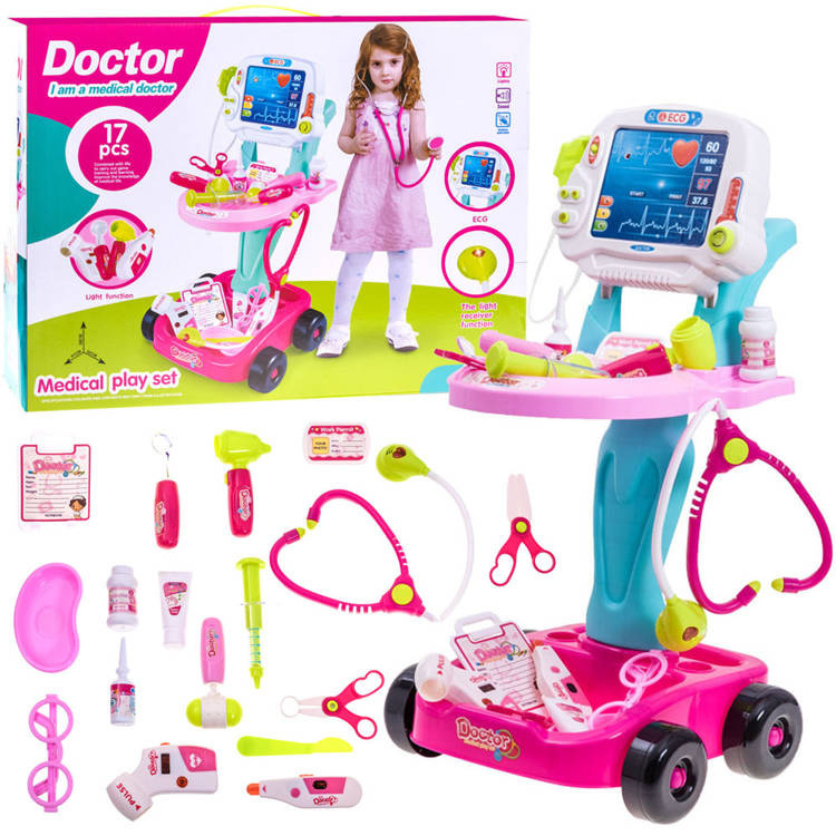 - wózek lekarza dla dzieci, mały lekarz, akcesoria medyczne, pielęgniarka, apteczka