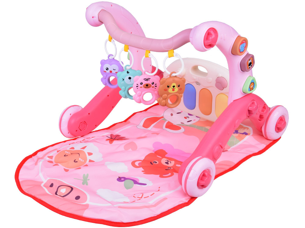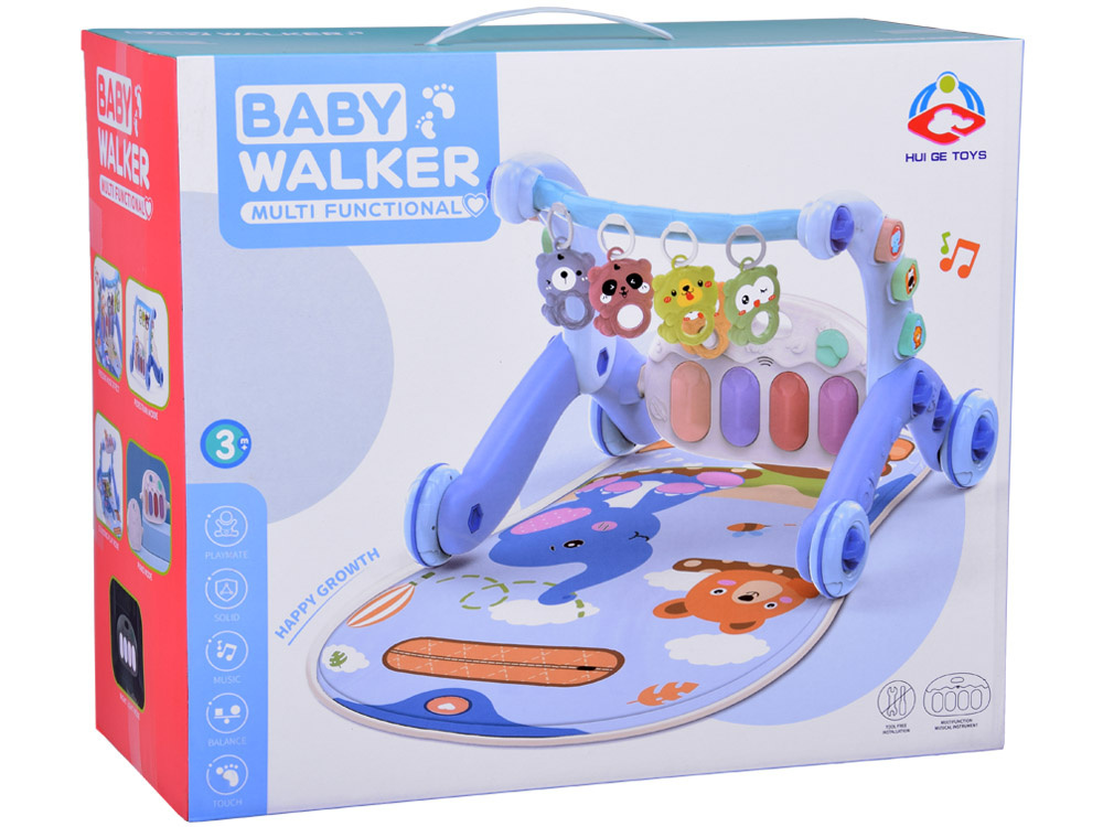Bezpieczeństwo i komfort: Miękka mata z uroczymi wzorami tworzy wygodne miejsce do zabawy, a solidna konstrukcja chodzika zapewnia stabilność i bezpieczeństwo podczas pierwszych kroków dziecka. Bezpieczne opływowe kształty, w dostosowanych rozmiarach dla dziecka.
