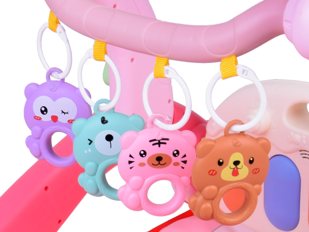 - Pianinko: muzyczne, podświetlane pianinko, można także używać samodzielnie, dzięki czemu maluszek może się nim bawić w łóżeczku, wózku.