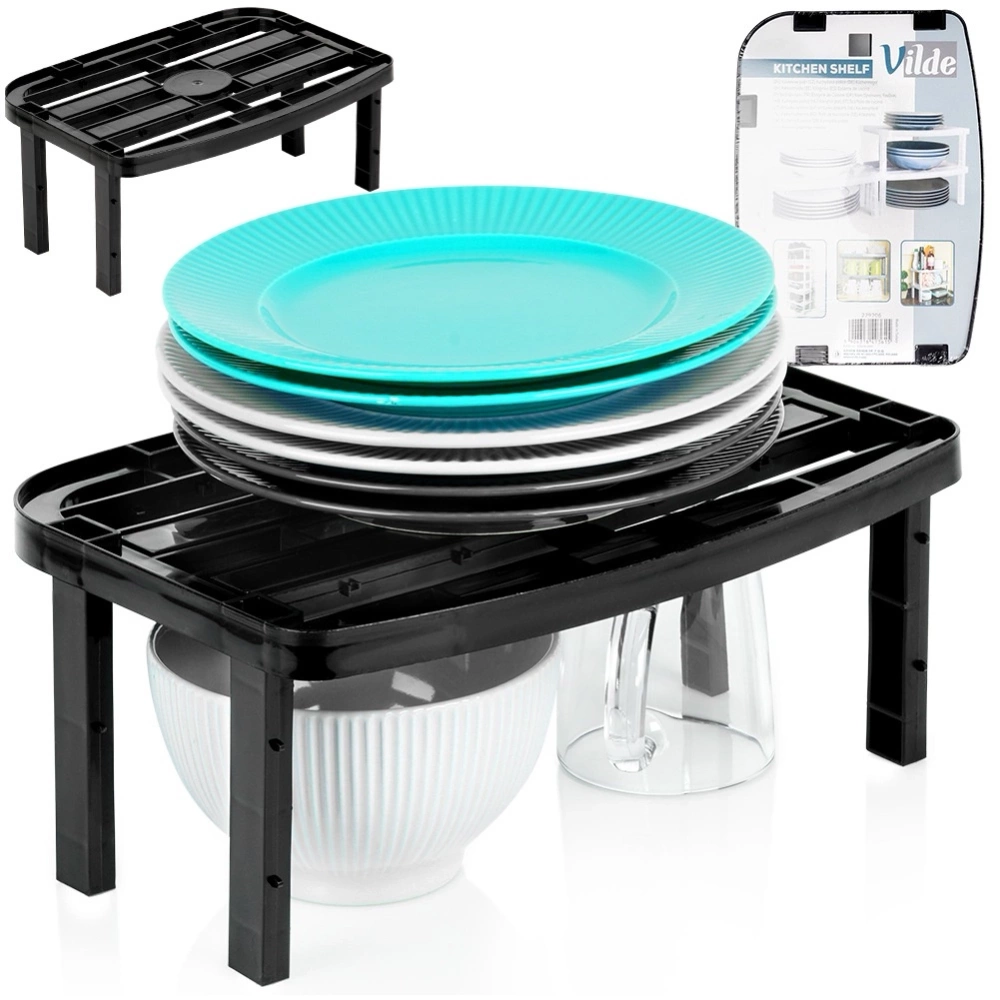 - Półka kuchenna idealna do organizacji przestrzeni w szafkach, na blacie lub w spiżarni. W zestawie dwa komplety nóżek, umożliwiające dopasowanie wysokości półki do przestrzeni.