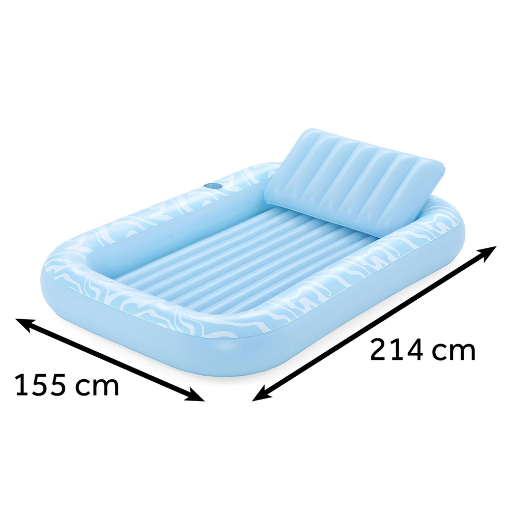 | - wytrzymałe, łatwe w obsłudze zawory, - 2 komory powietrzne, - wyjmowana poduszka, - komora na napoje, - konstrukcja przegrodowa, - z materaca można korzystać zarówno w wodzie jak i poza nią |