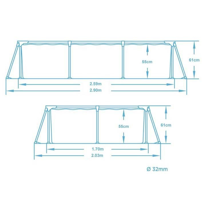 - Wymiary zewnętrzne basenu 290 x 203 x 61 cm