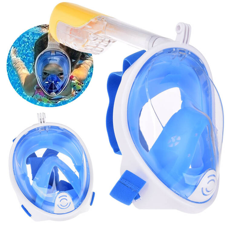 - Niebieska, pełnotwarzowa, szczelna maska do wody z rurką silikon + PC snorekling, rozmiar S//M