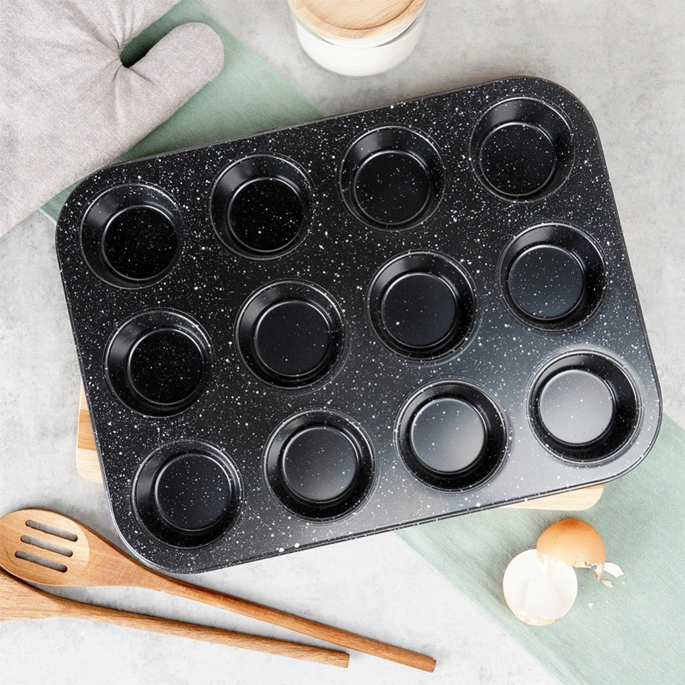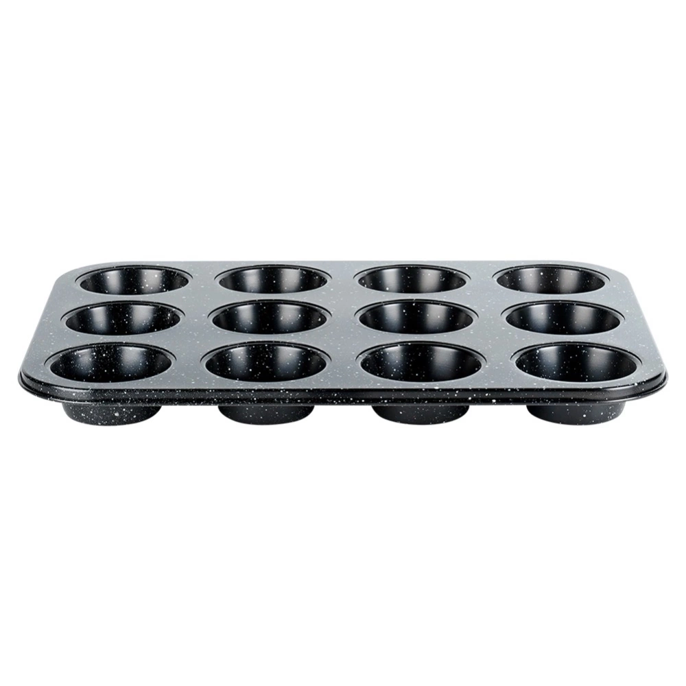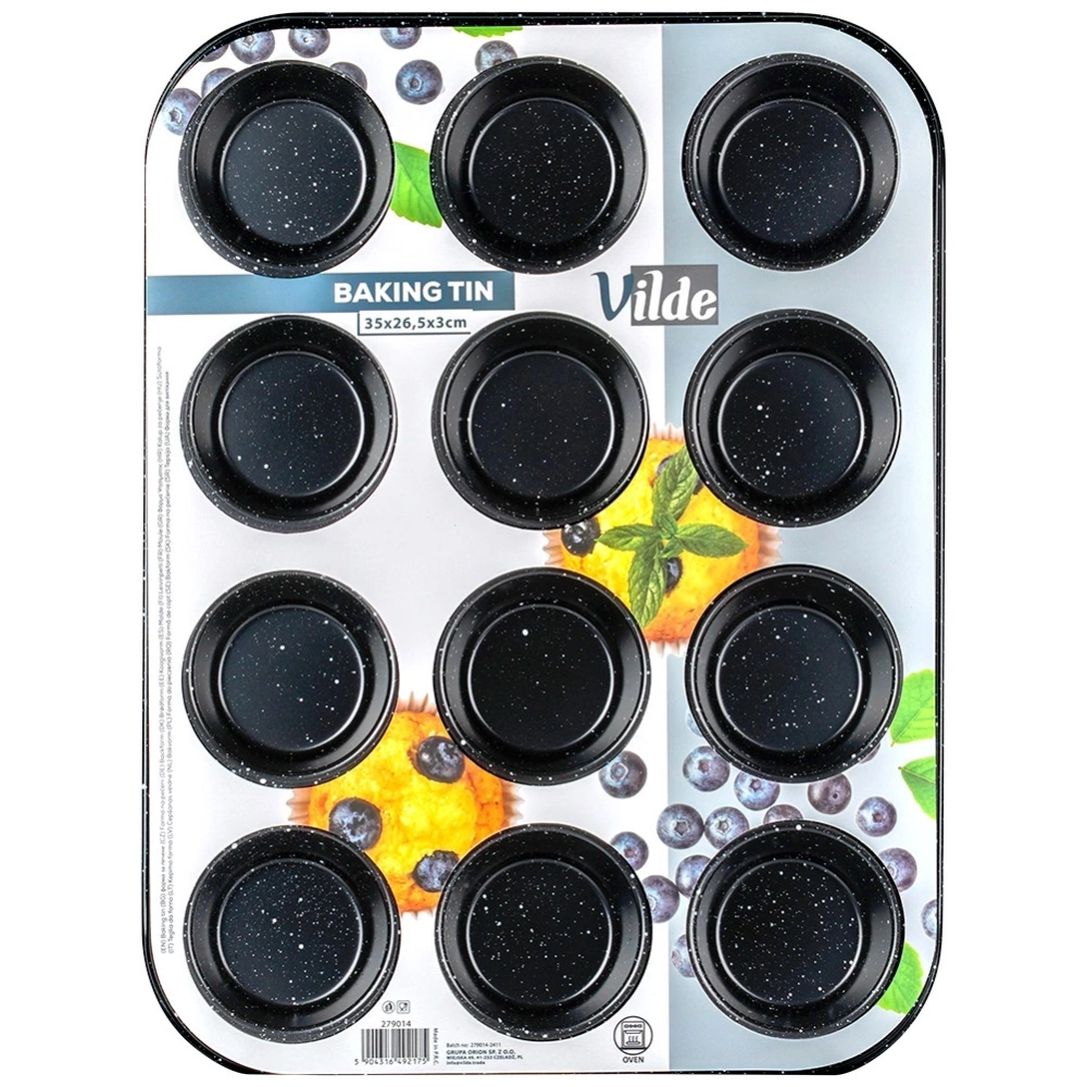 - Forma do muffinek o długości 35 cm. Wykonana ze stali węglowej z powłoką granitową. Idealna do przygotowania 12 muffinek, ciastek lub babeczek.