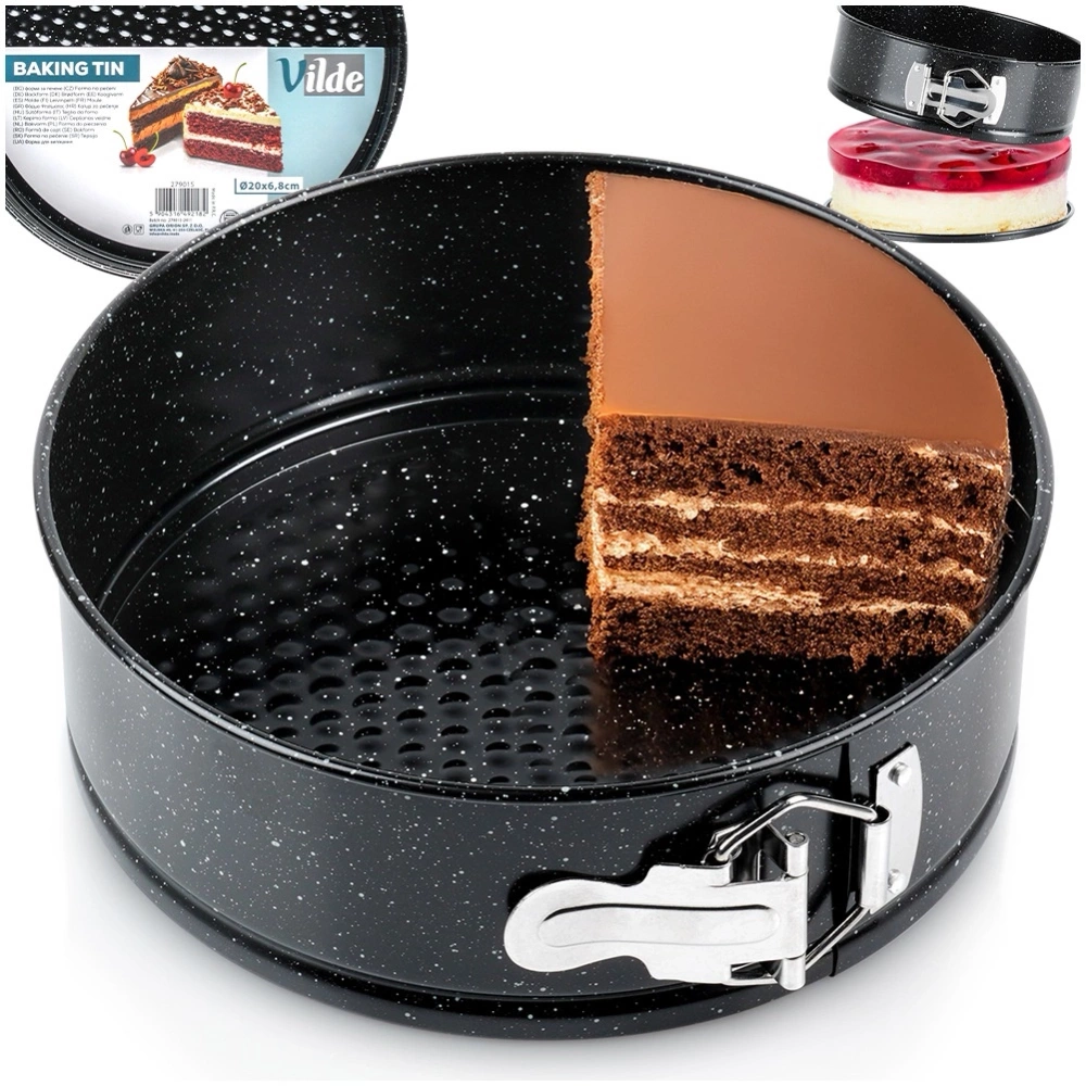 Okrągła tortownica do pieczenia ciast i tortów. Rozpinane boki zapewnią wygodne wyciąganie upieczonego ciasta, ale także przydadzą się podczas mycia formy. Niezbędna w każdym domu. Wykonana z najwyższej jakości materiałów, co zapewni komfort użytkowania. Oryginalny produkt marki Vilde. Wyprodukowano zgodnie z europejskimi standardami.