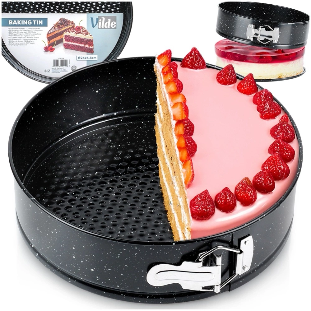 Okrągła tortownica do pieczenia ciast i tortów. Rozpinane boki zapewnią wygodne wyciąganie upieczonego ciasta, ale także przydadzą się podczas mycia formy. Niezbędna w każdym domu. Wykonana z najwyższej jakości materiałów, co zapewni komfort użytkowania. Oryginalny produkt marki Vilde. Wyprodukowano zgodnie z europejskimi standardami.