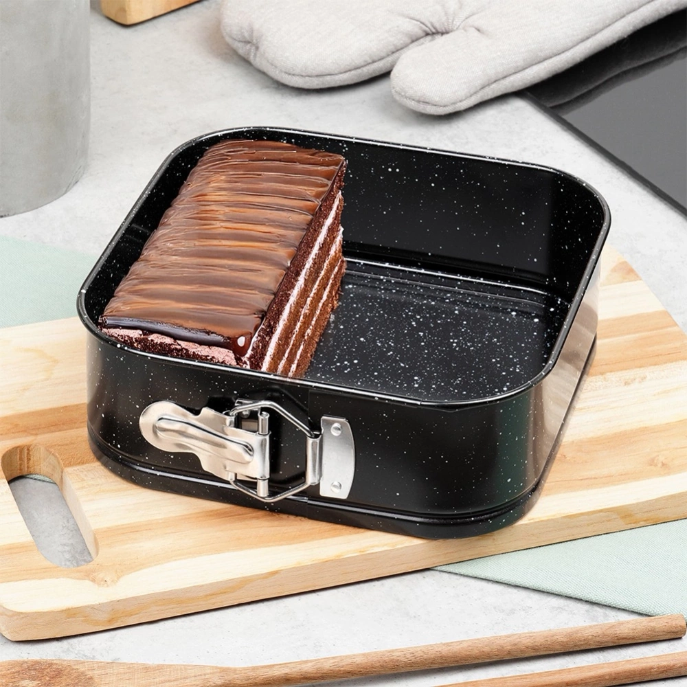 - Kwadratowa forma do pieczenia ciast z granitową powłoką. Brzegi tortownicy są rozpinane. Forma nadaje się do piekarników gazowych oraz elektrycznych.