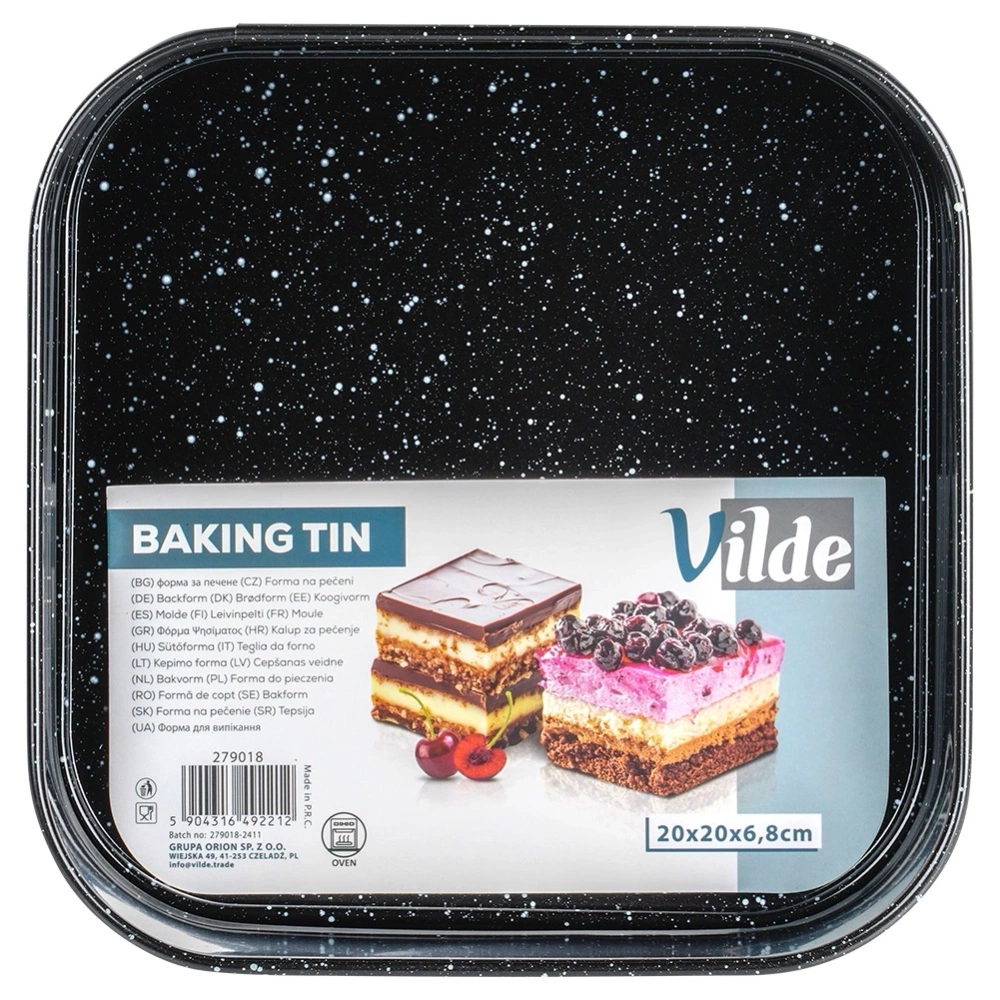- Kwadratowa forma do pieczenia - Praktyczna forma w kwadratowym kształcie, idealna do wypieków. Doskonała do codziennego użytku. Wymiary zewnętrzne formy to 20 x 20 x 6,8 cm.