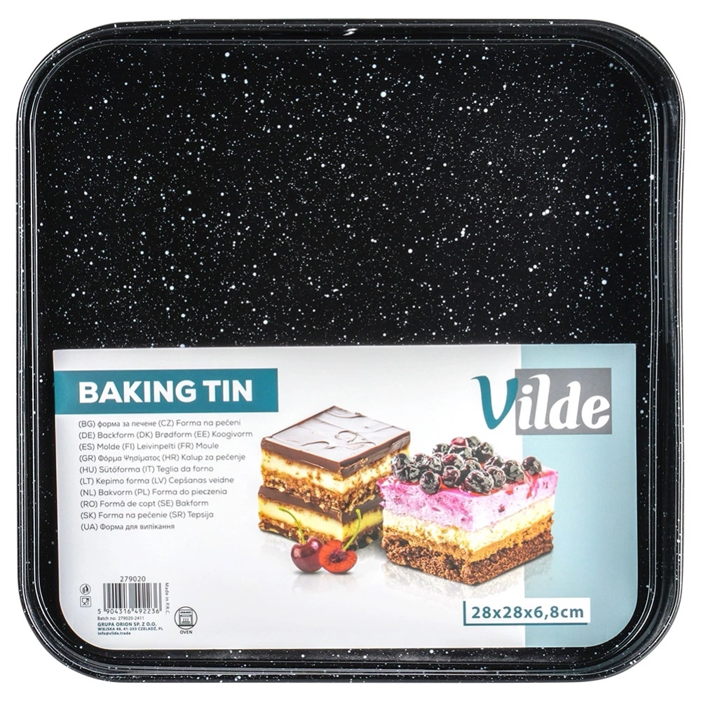 - Kwadratowa forma do pieczenia - Praktyczna forma w kwadratowym kształcie, idealna do wypieków. Doskonała do codziennego użytku. Wymiary zewnętrzne formy to 28 x 28 x 6,8 cm.