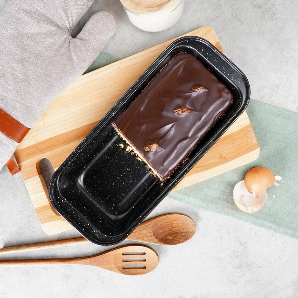 - Prostokątny kształt i wygoda użytkowania - Klasyczny, prostokątny kształt formy ułatwia równomierne rozłożenie ciasta, a lekko zaokrąglone rogi ułatwiają wyjmowanie gotowego wypieku. Forma jest lekka, poręczna i wygodna w codziennym użytkowaniu.
