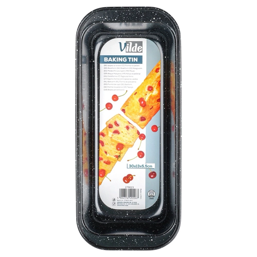 Prostokątna forma do pieczenia chleba, pasztetu, ciast ucieranych oraz drożdżowych. Idealna do pieczenia również babki. Odpowiedni kształt formy pozwoli na upieczenie keksu lub pasztetu w odpowiednim kształcie. Po wyjęciu z niej wypieki będą prezentować się niezwykle efektownie. Łatwa w czyszczeniu i wygodna w użytkowaniu. Oryginalny produkt marki Vilde. Wyprodukowano zgodnie z europejskimi standardami.