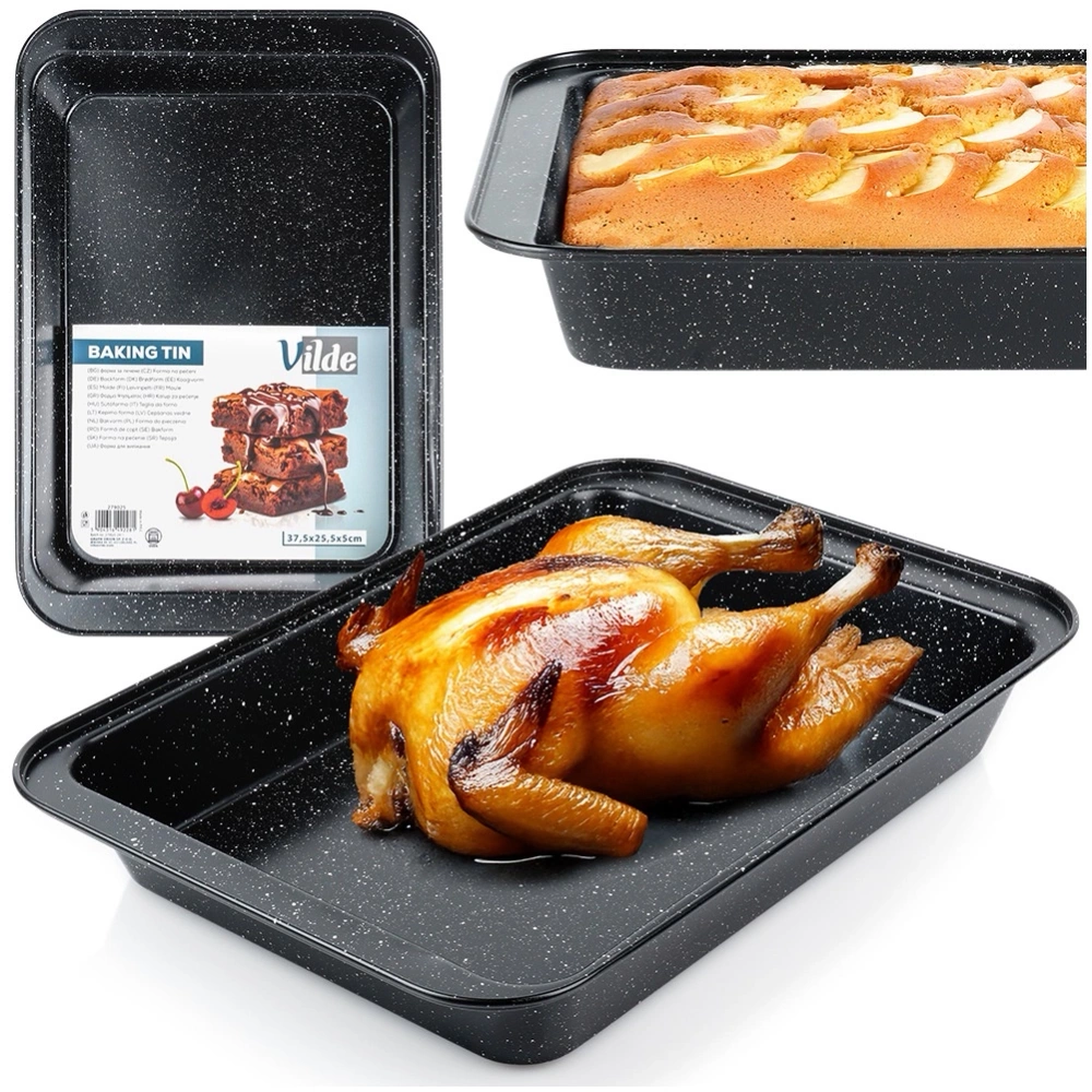 Blacha do pieczenia z powłoką granitową, znajdzie szerokie zastosowanie w kuchni. Łatwa w czyszczeniu i wygodna w użytkowaniu. Idealna do pieczenia słodkich i słonych potraw. Wykonana z najwyższej jakości materiałów, co zapewni komfort użytkowania. Oryginalny produkt marki Vilde. Wyprodukowano zgodnie z europejskimi standardami.