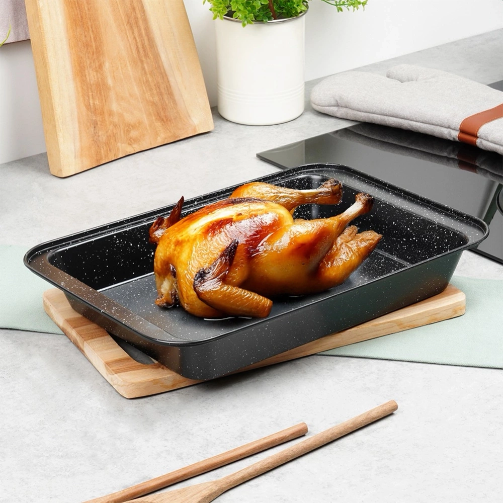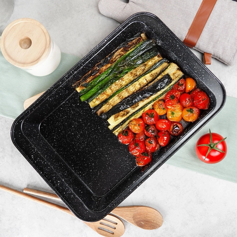 - Brytfanna z powłoką granitową do pieczenia ciastek, frytek, pizzy czy mięsa. Blacha nadaje się do piekarników gazowych oraz elektrycznych.