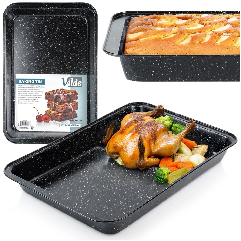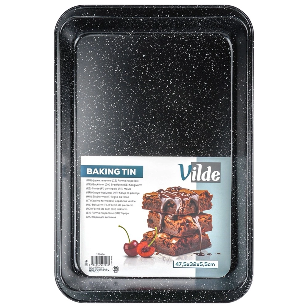Blacha do pieczenia z powłoką granitową, znajdzie szerokie zastosowanie w kuchni. Łatwa w czyszczeniu i wygodna w użytkowaniu. Idealna do pieczenia słodkich i słonych potraw. Wykonana z najwyższej jakości materiałów, co zapewni komfort użytkowania. Oryginalny produkt marki Vilde. Wyprodukowano zgodnie z europejskimi standardami.