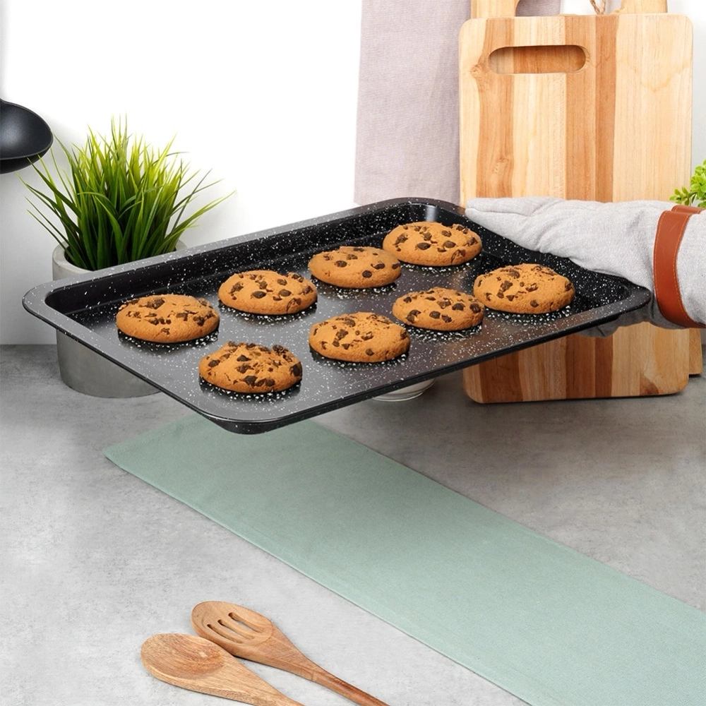 - Blacha z powłoką granitową do pieczenia ciastek, frytek, pizzy czy mięsa. Blacha nadaje się do piekarników gazowych oraz elektrycznych.