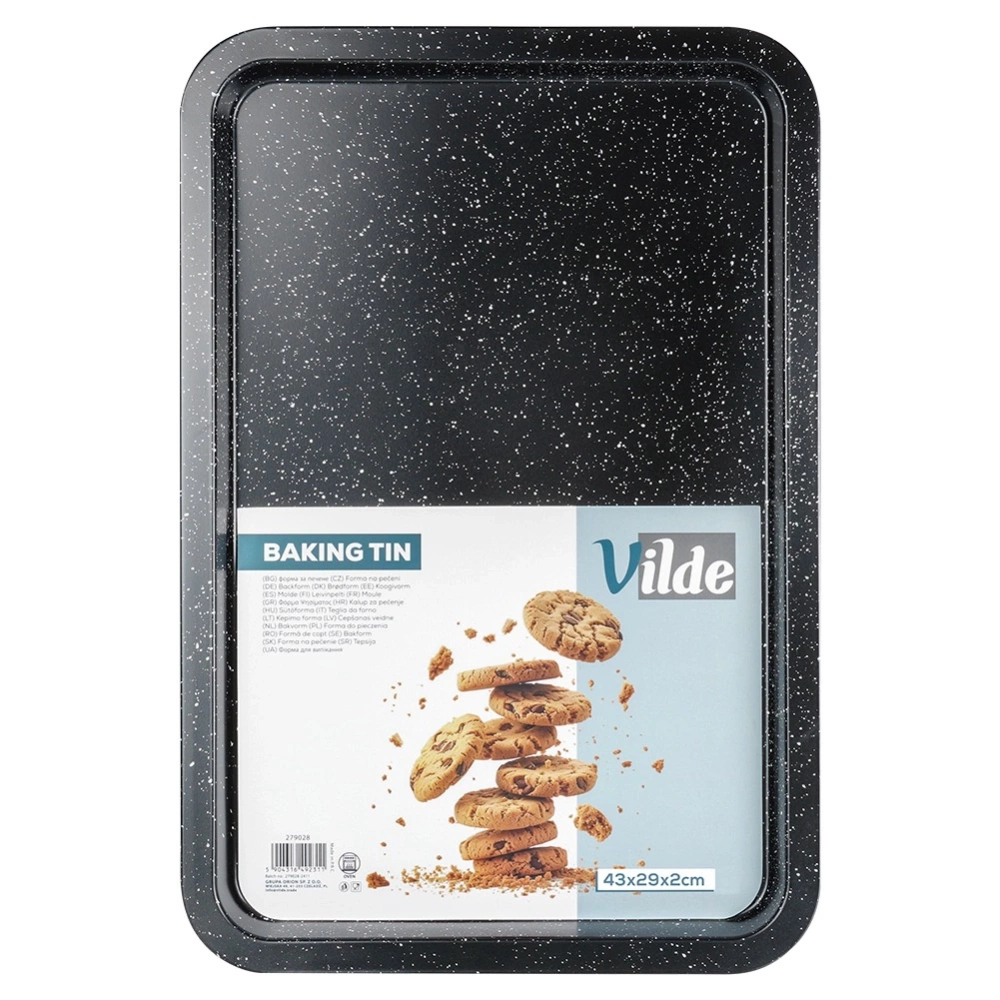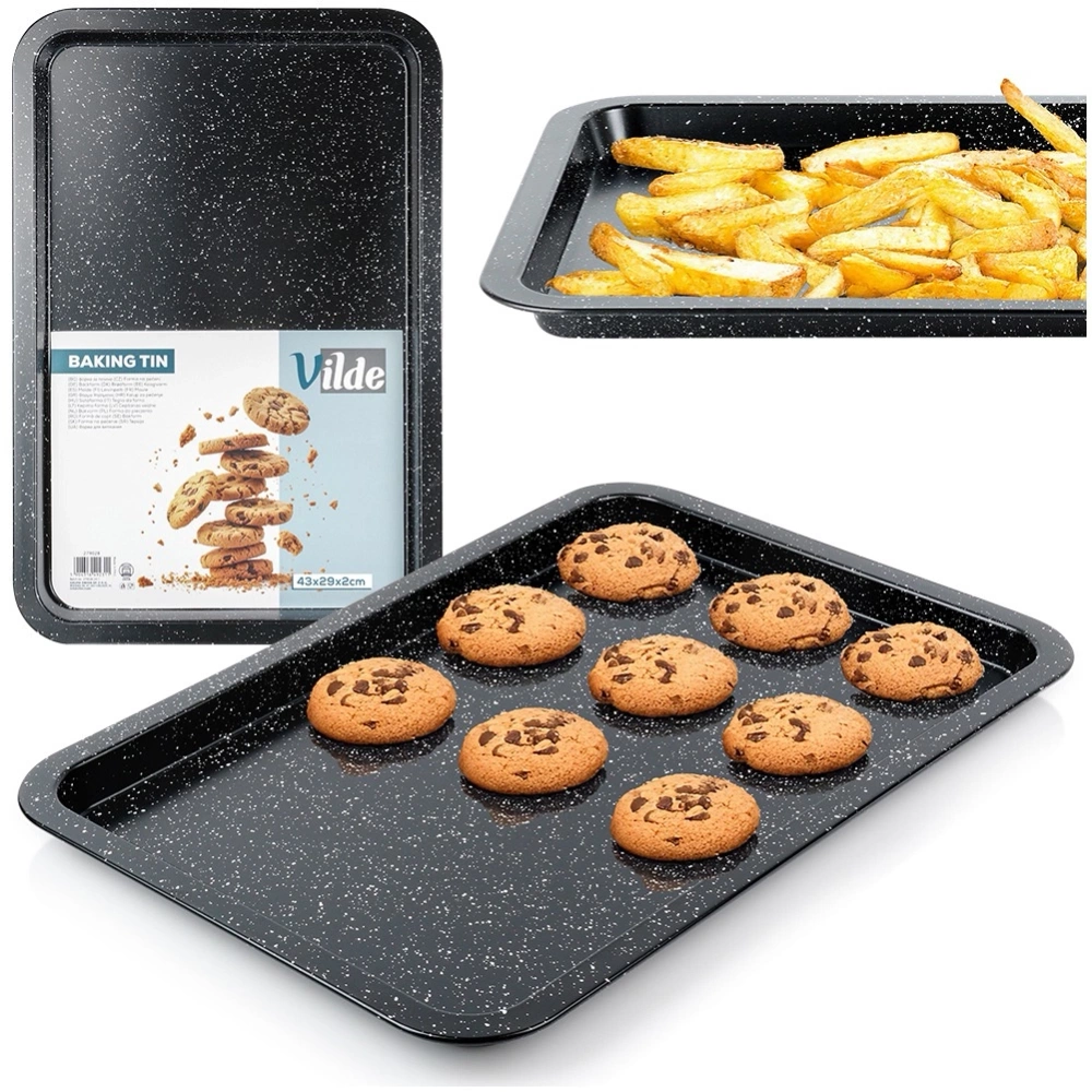Blacha do pieczenia z powłoką granitową, znajdzie szerokie zastosowanie w kuchni. Łatwa w czyszczeniu i wygodna w użytkowaniu. Idealna do pieczenia słodkich i słonych potraw. Wykonana z najwyższej jakości materiałów, co zapewni komfort użytkowania. Oryginalny produkt marki Vilde. Wyprodukowano zgodnie z europejskimi standardami.