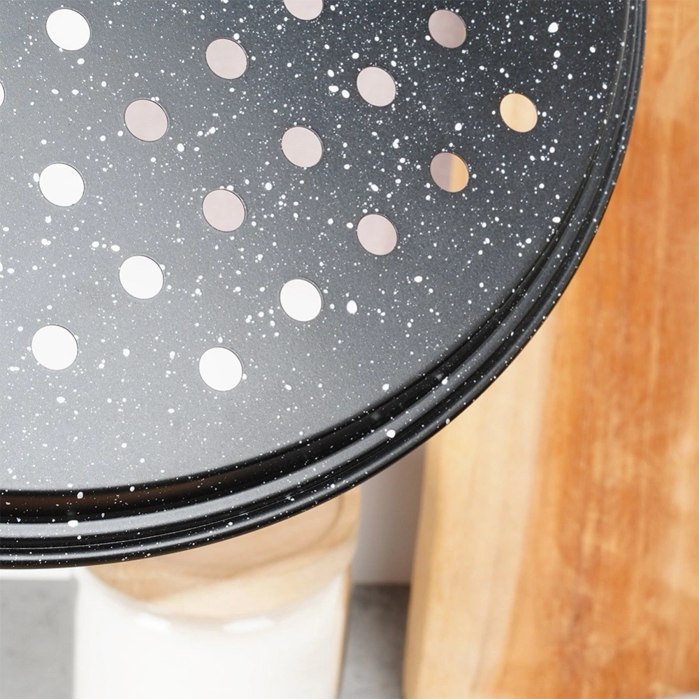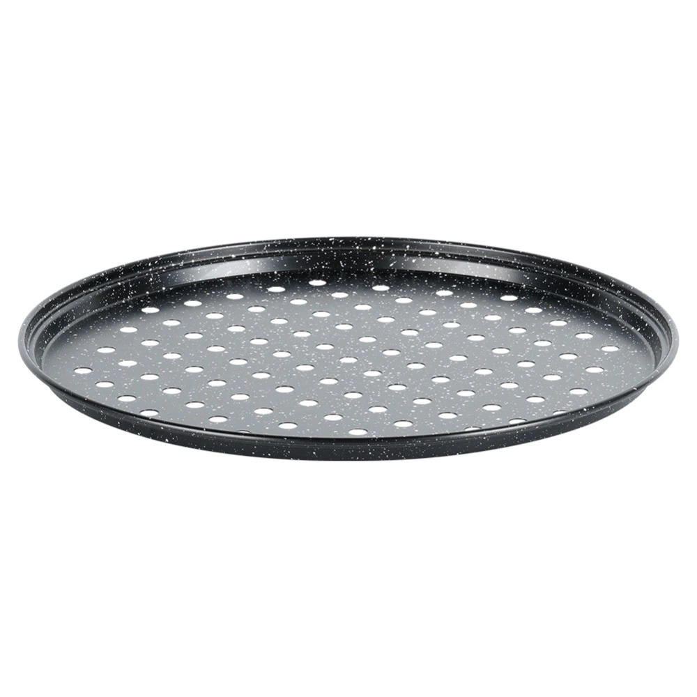 - Okrągła forma do pieczenia pizzy z perforowanym dnem. Wykonana ze stali węglowej z powłoką granitową. Z jej pomocą osiągniemy idealną grubość i kształt pizzy.