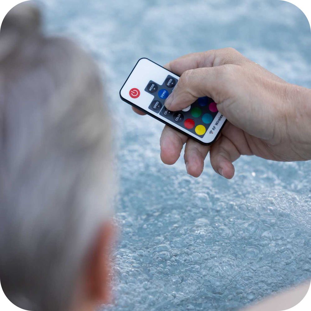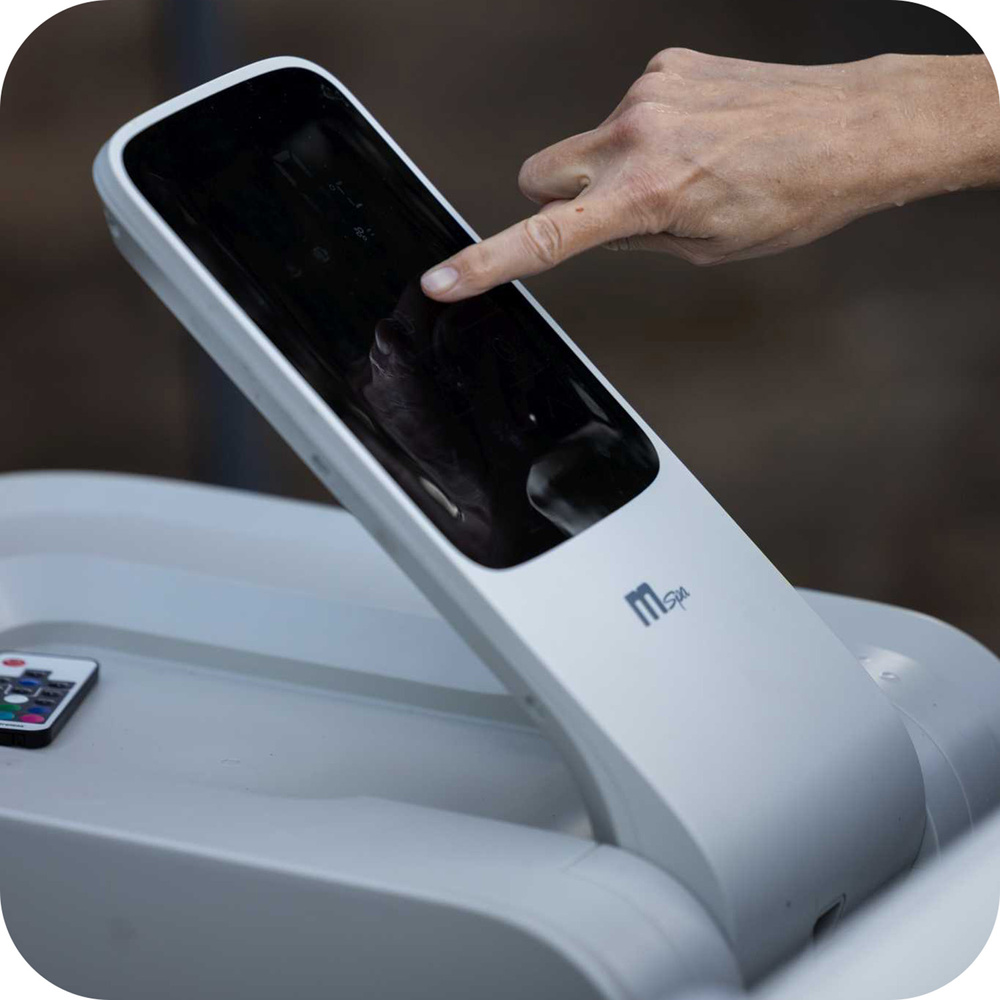 Pożegnaj się z dniami, gdy trzeba było wychodzić z relaksującej kąpieli tylko po to, by zmienić niektóre ustawienia swojego spa. Miej pełną kontrolę nad swoim MSpa przez cały czas na wyciągnięcie ręki.