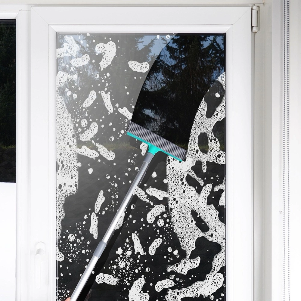- Wyposażona w gąbkę oraz ściągaczkę - Ściągaczka posiada dwufunkcyjną końcówkę, gąbkę pokrytą siateczką, która skutecznie usuwa zabrudzenia oraz elastyczną listwę z gumy do ściągania nadmiaru wody bez smug.