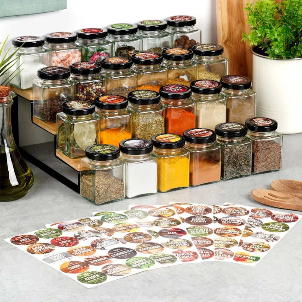 - Stylowy i funkcjonalny zestaw - Pojemniki z naklejkami łączą praktyczność z estetyką. Przyprawy będą zawsze pod ręką, a jednocześnie są pięknie wyeksponowane. Pojemniki na przyprawy z naklejkami to świetne rozwiązanie dla osób ceniących porządek i funkcjonalność w kuchni. Zestaw sprawdzi się również jako praktyczny prezent dla miłośników gotowania.