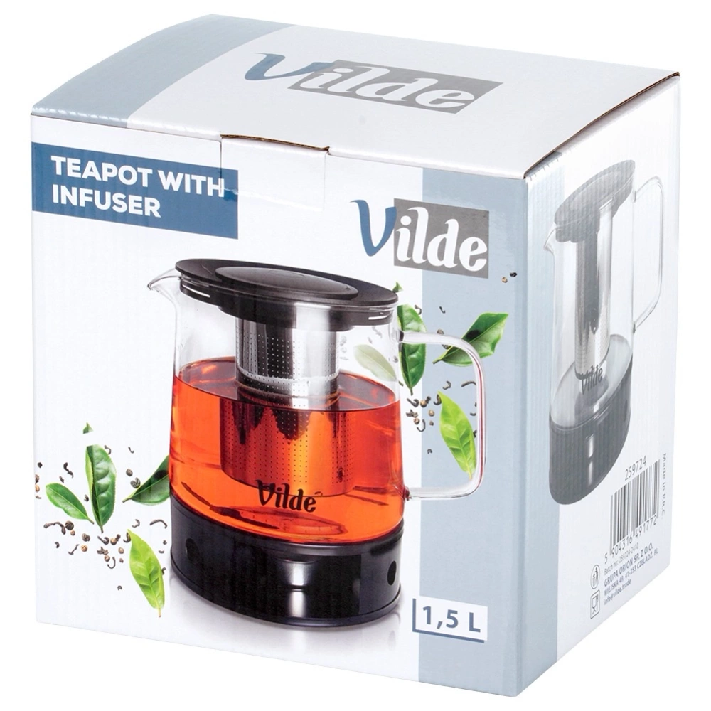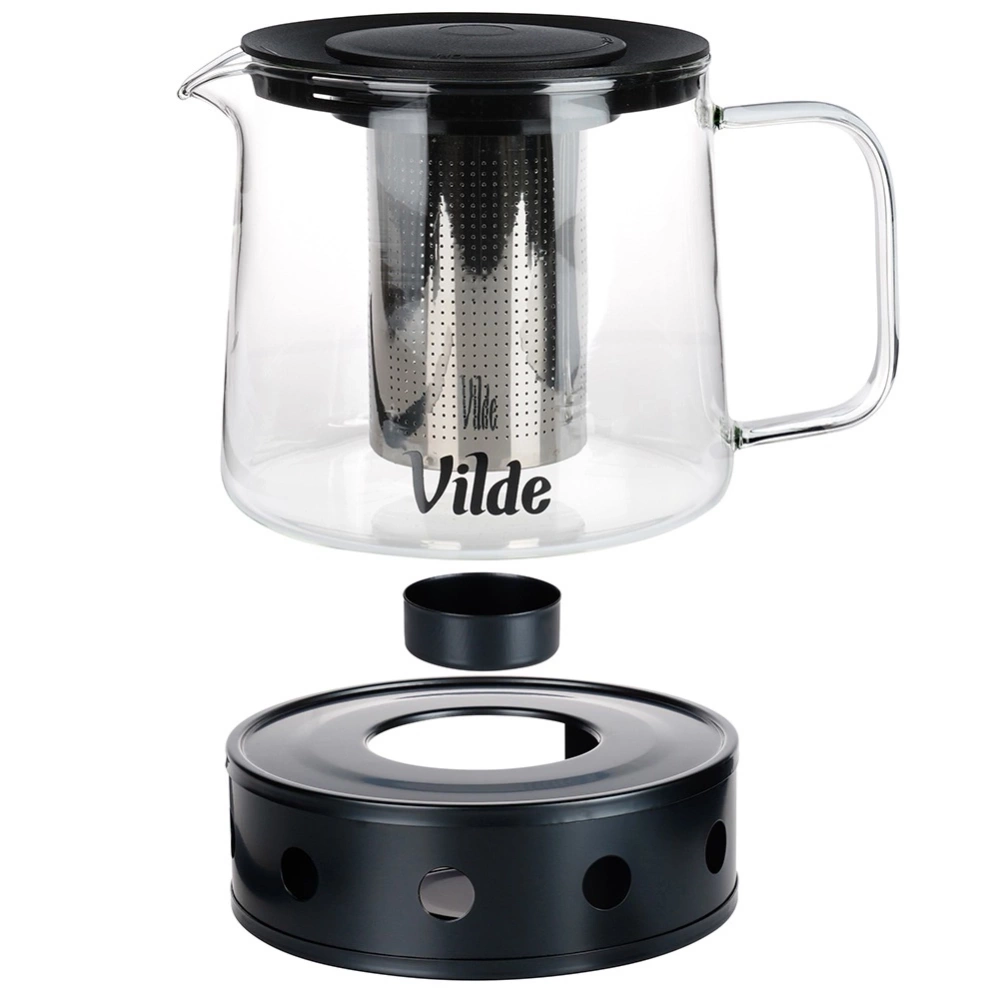 Klasyczny dzbanek z zaparzaczem do herbaty w zestawie z podgrzewaczem. Umożliwia przygotowywanie pysznych naparów bez fusów i serwowanie ciepłych napojów. Sprawdzi się do parzenia herbaty, naparów owocowych lub ziół. Wygodny w użytkowaniu oraz łatwy w czyszczeniu. Doskonały pomysł na prezent dla miłośników parzonej herbaty. Oryginalny produkt marki Vilde. Wyprodukowano zgodnie z europejskimi standardami.