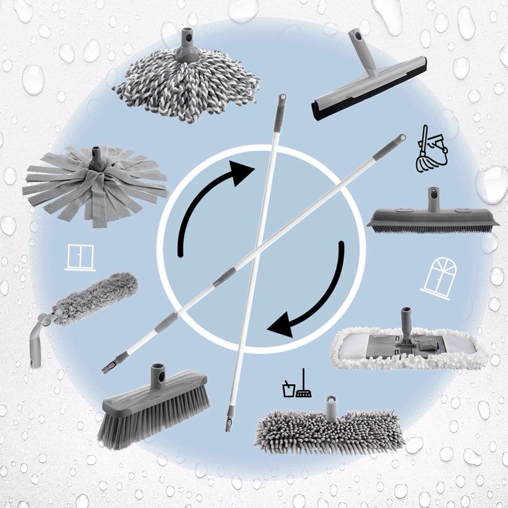 - System wymiennych końcówek - Końcówka jest kompatybilna z kijem o nr katalogowym 711521 oraz teleskopowym kijem o nr katalogowym 711522. Łatwe mocowanie na klips umożliwia szybkie podłączenie. W ofercie dostępne inne produkty kompatybilne z systemem wymiennych końcówek (nr katalogowy: 711854, 711855, 711443, 711442, 711441, 711440, 710631, 712024), co pozwala na wygodne i efektywne sprzątanie różnych powierzchni, zapewniając komfort użytkowania.
