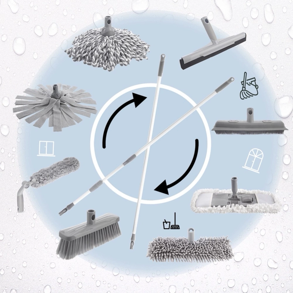 - System wymiennych końcówek - Końcówka jest kompatybilna z kijem o nr katalogowym 711521 oraz teleskopowym kijem o nr katalogowym 711522. Łatwe mocowanie na klips umożliwia szybkie podłączenie. W ofercie dostępne inne produkty kompatybilne z systemem wymiennych końcówek (nr katalogowy: 711854, 711855, 711443, 711442, 711441, 710631, 710630, 712024), co pozwala na wygodne i efektywne sprzątanie różnych powierzchni, zapewniając komfort użytkowania.